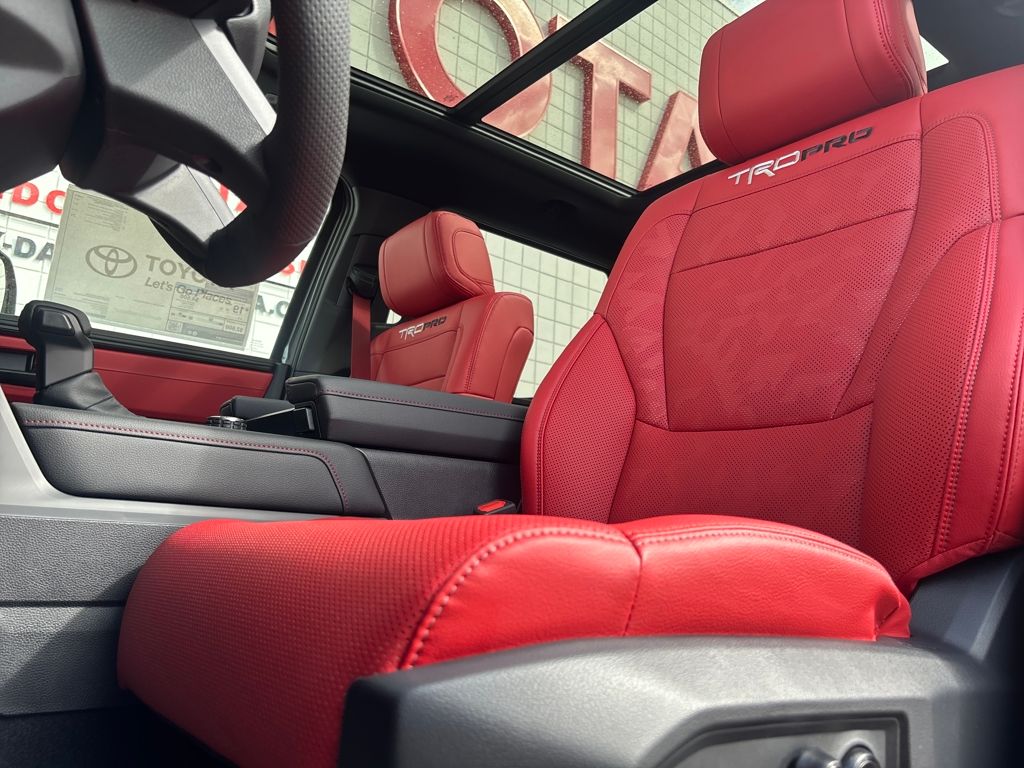- TRD Pro SofTex®-trimmed seats with contrast stitching and technical-camo-pattern inserts; 8-way power-adjustable driver and front passenger seats with power-adjustable lumbar support
