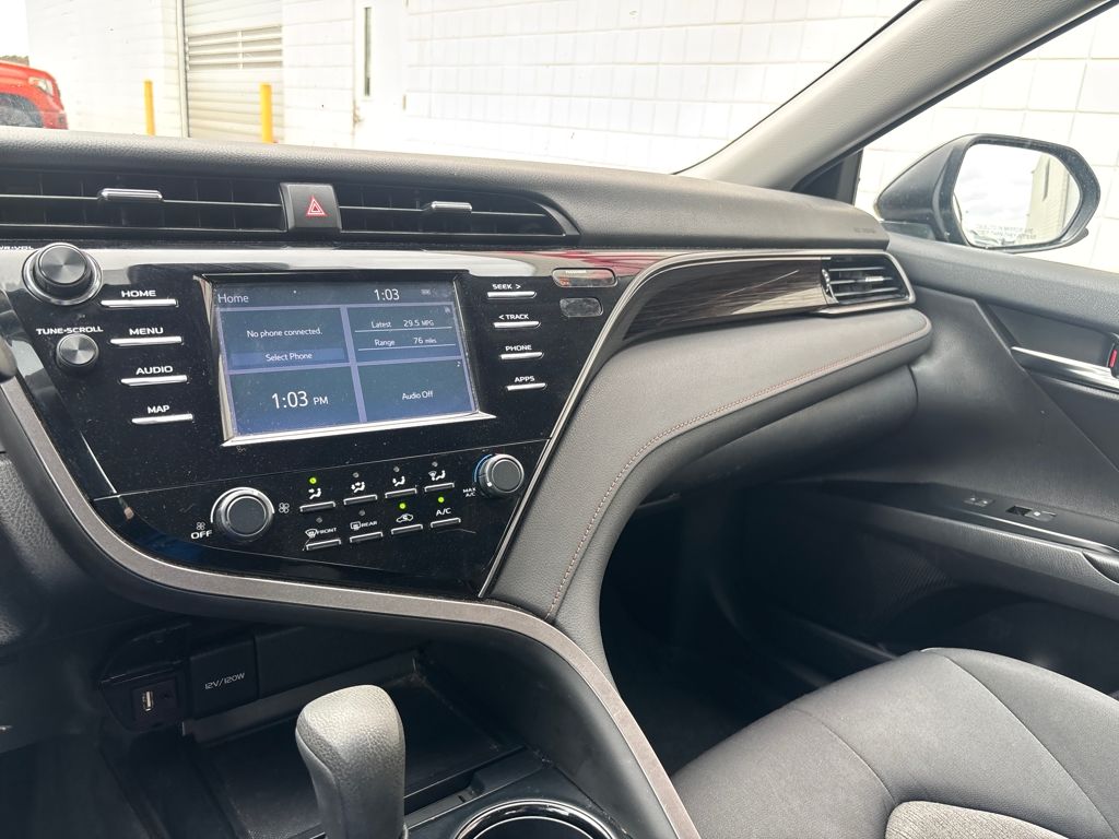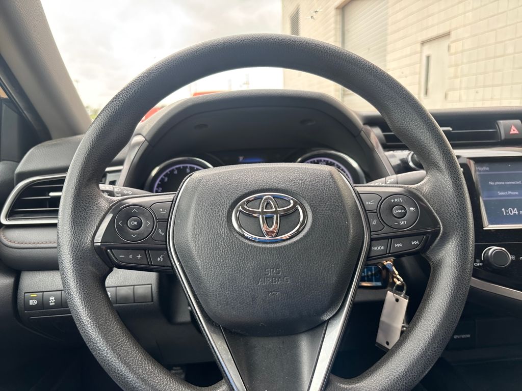 The interior of this Camry LE is designed with your comfort and convenience in mind. Enjoy the convenience of the Entune 3.0 Audio system with App Suite, seamlessly integrating your smartphone for hands-free calls, music, and navigation. Stay connected and in control with the steering wheel-mounted audio controls and the available Apple CarPlay feature.