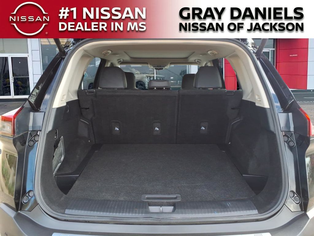 SV Package, 18" Aluminum Alloy Wheels, 4-Wheel Disc Brakes, 5.604 Axle Ratio, 6 Speakers, ABS brakes, Air Conditioning, Alloy wheels, AM/FM Radio, AM/FM radio, Auto High-beam Headlights, Automatic temperature control, Black Splash Guards (Set of 4), Brake assist, Bumpers: body-color, Chrome Rear Bumper Protector, Cloth Seat Trim, Delay-off headlights, Driver door bin, Driver vanity mirror, Dual front impact airbags, Dual front side impact airbags, Electronic Stability Control, Emergency communication system: NissanConnect Services, First Aid Kit, Floor Mats w/1-Piece Cargo Area Protector, Four wheel independent suspension, Front anti-roll bar, Front Bucket Seats, Front Center Armrest, Front dual zone A/C, Front reading lights, Fully automatic headlights, Heated door mirrors, Heated Driver & Front Passenger Seats, Heated Leather-Wrapped Steering Wheel, Illuminated entry, Knee airbag, Leatherette Seat Trim, Low tire pressure warning, NissanConnect featuring Apple CarPlay and Android Auto, Occupant sensing airbag, Outside temperature display, Overhead airbag, Overhead console, Panic alarm, Passenger door bin, Passenger vanity mirror, Power door mirrors, Power driver seat, Power Liftgate, Power Panoramic Moonroof, Power steering, Power windows, Premium Package, Radio data system, Rear anti-roll bar, Rear Parking Sensors, Rear seat center armrest, Rear side impact airbag, Rear window defroster, Rear window wiper, Remote keyless entry, Roof Rails, Second Row Sunshades, Security system, Speed control, Speed-Sensitive Wipers, Split folding rear seat, Spoiler, Steering wheel mounted audio controls, Tachometer, Telescoping steering wheel, Tilt steering wheel, Traction control, Trip computer, Turn signal indicator mirrors, Variably intermittent wipers.