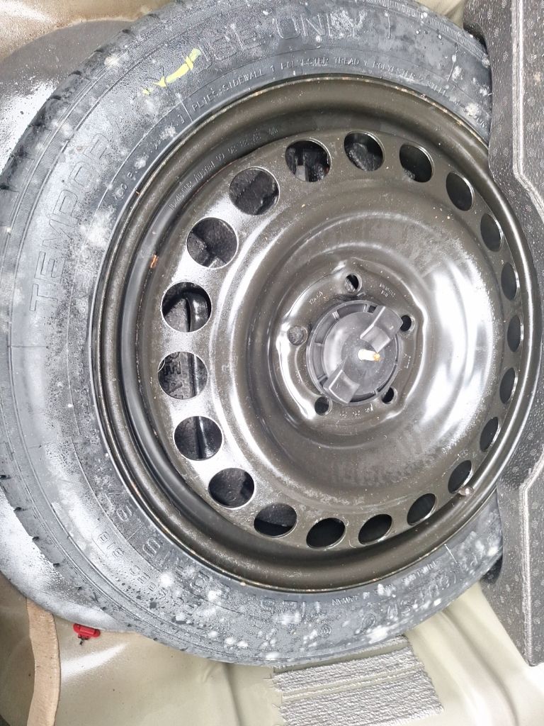- Compact spare tire with steel wheel